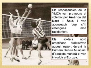 El partit el guanya lequip que aconsegueix guanyar tres sets. Lésser humà va patir. Característiques bàsiques El voleibol és un esport dequip que consisteix a fer passar la pilota al camp contrari per damunt duna xarxa collocada al mig de la pista.